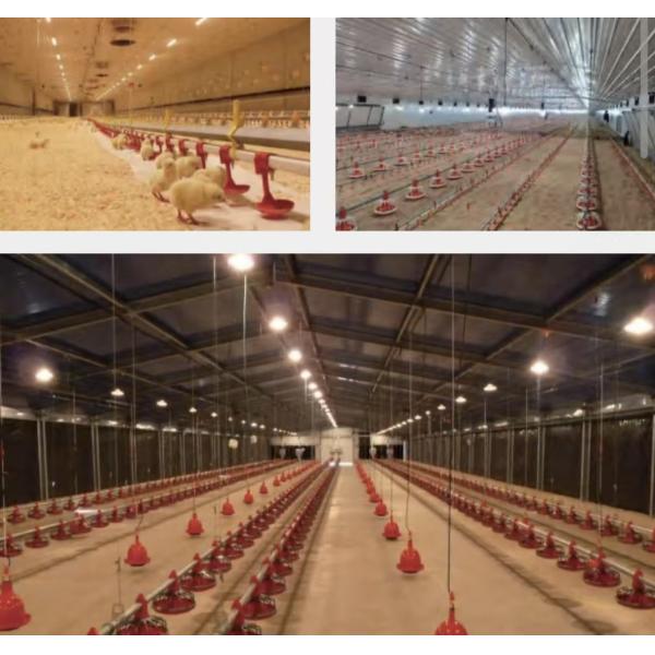 Broiler feeding system, consists of automatic feeding&drinking system, environmental control sewage system and manure cleaning system. It is a traditional raising mode.